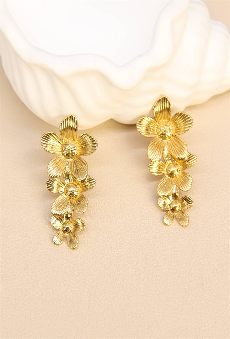Drievoudige Bloem Oorbellen van Roestvrij Staal: Verguld |Beautiva Boutique