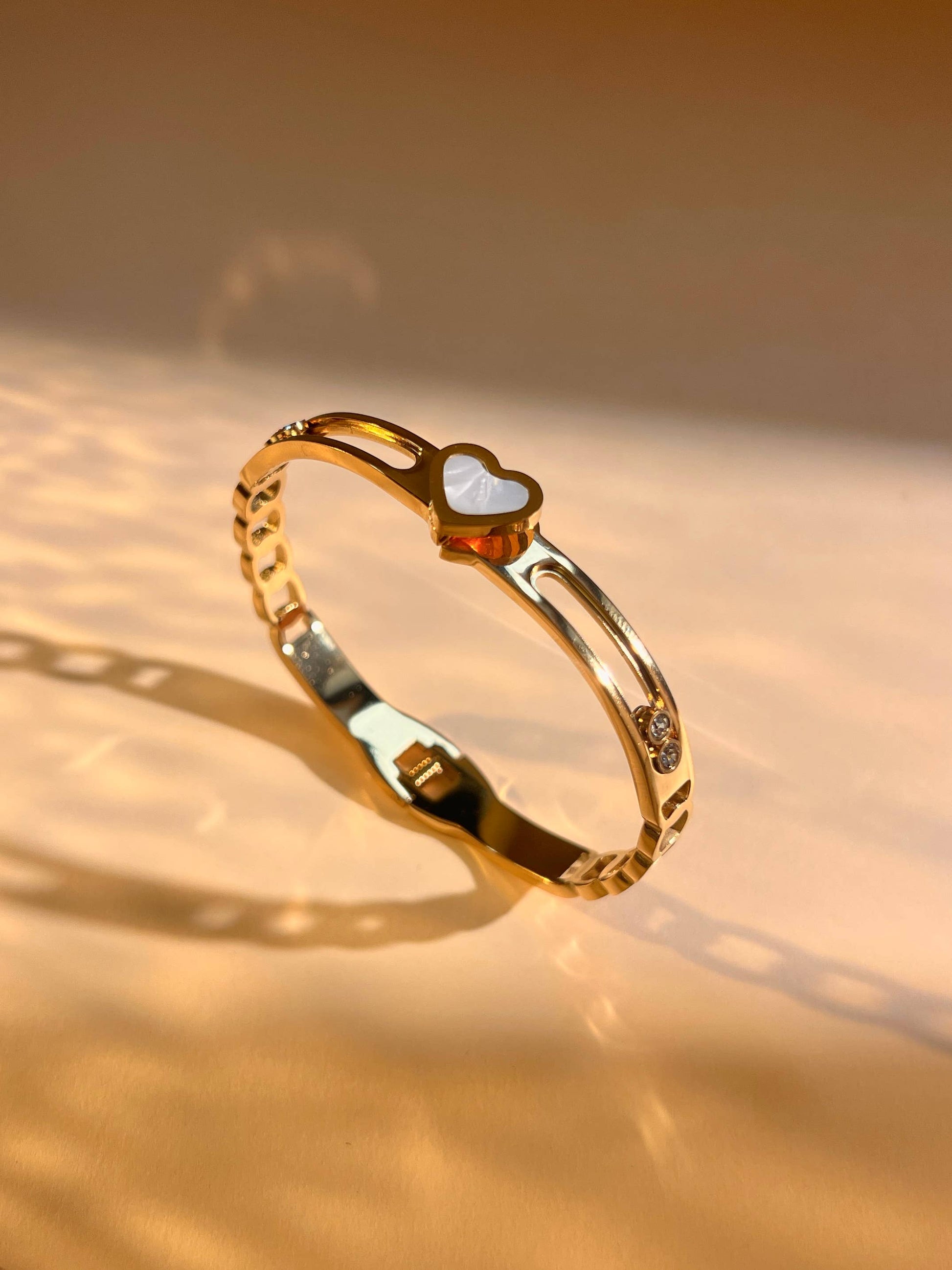 Hartvormige schuifarmband met strass Roestvrij staal: Geelgoud|Beautiva Boutique