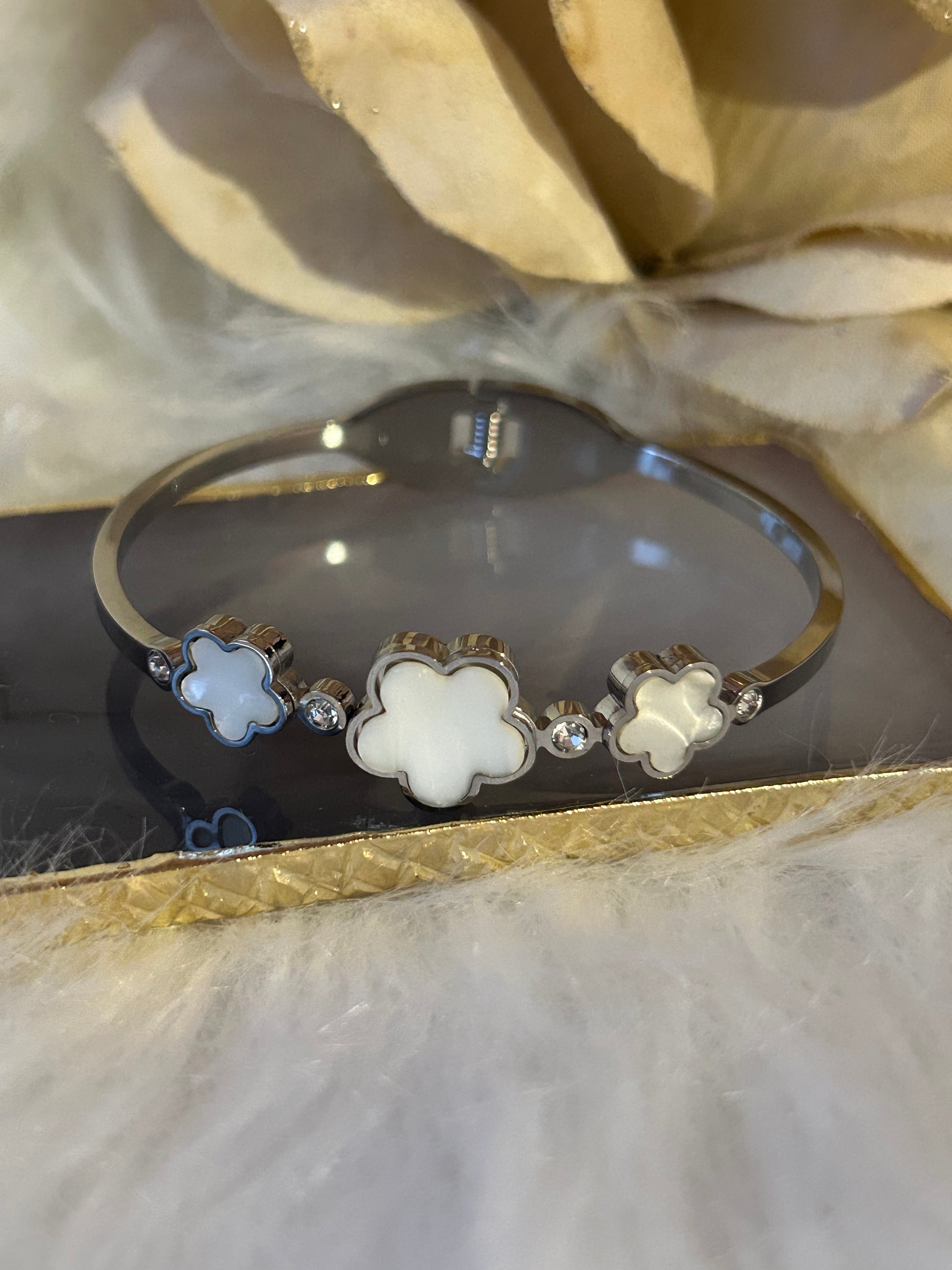 Luxe Zilverkleurige Armband met parelmoer klavers| Beautiva Boutique