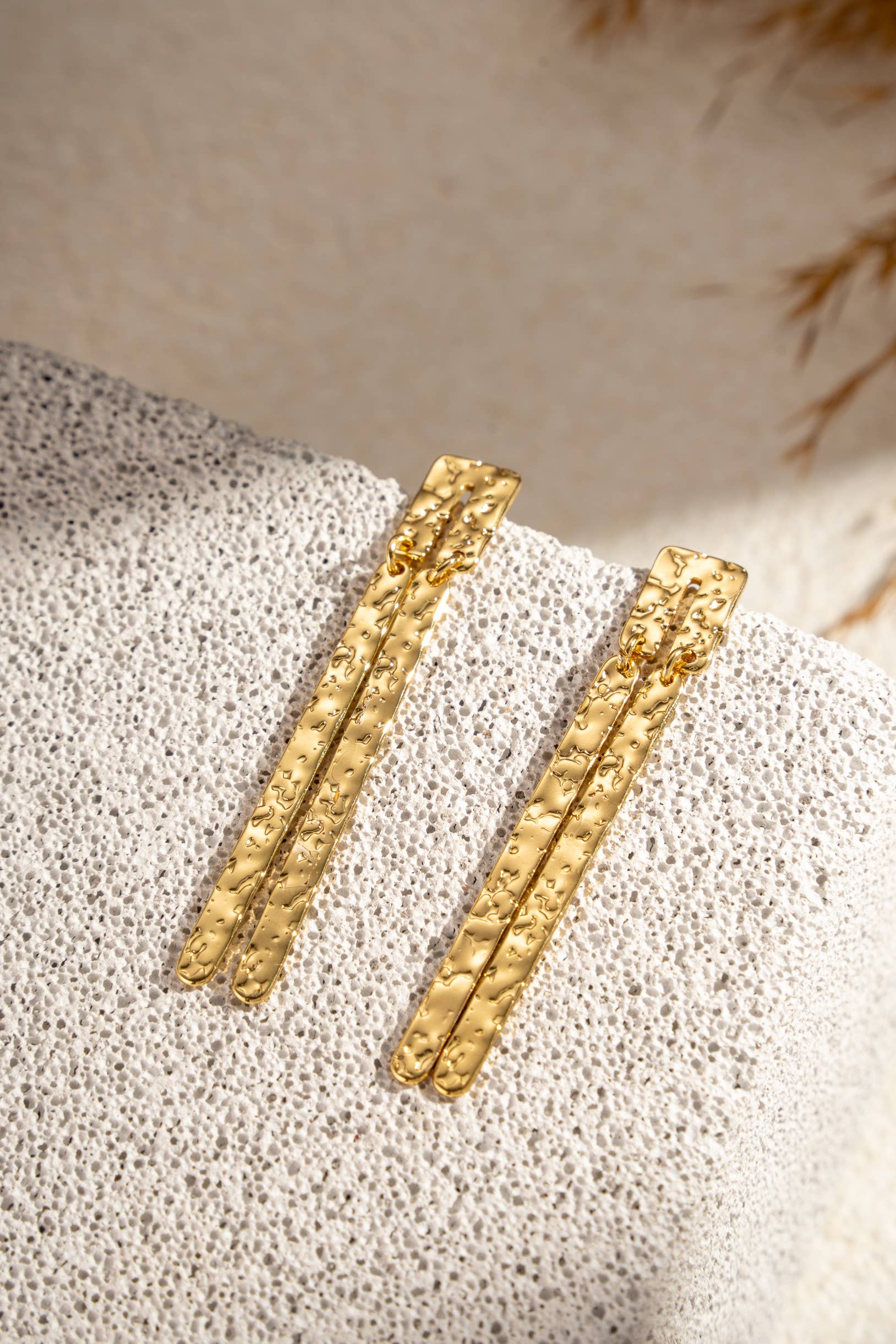 Rechthoekige gehamerde gouden oorbellen van roestvrij staal|Beautiva Boutique