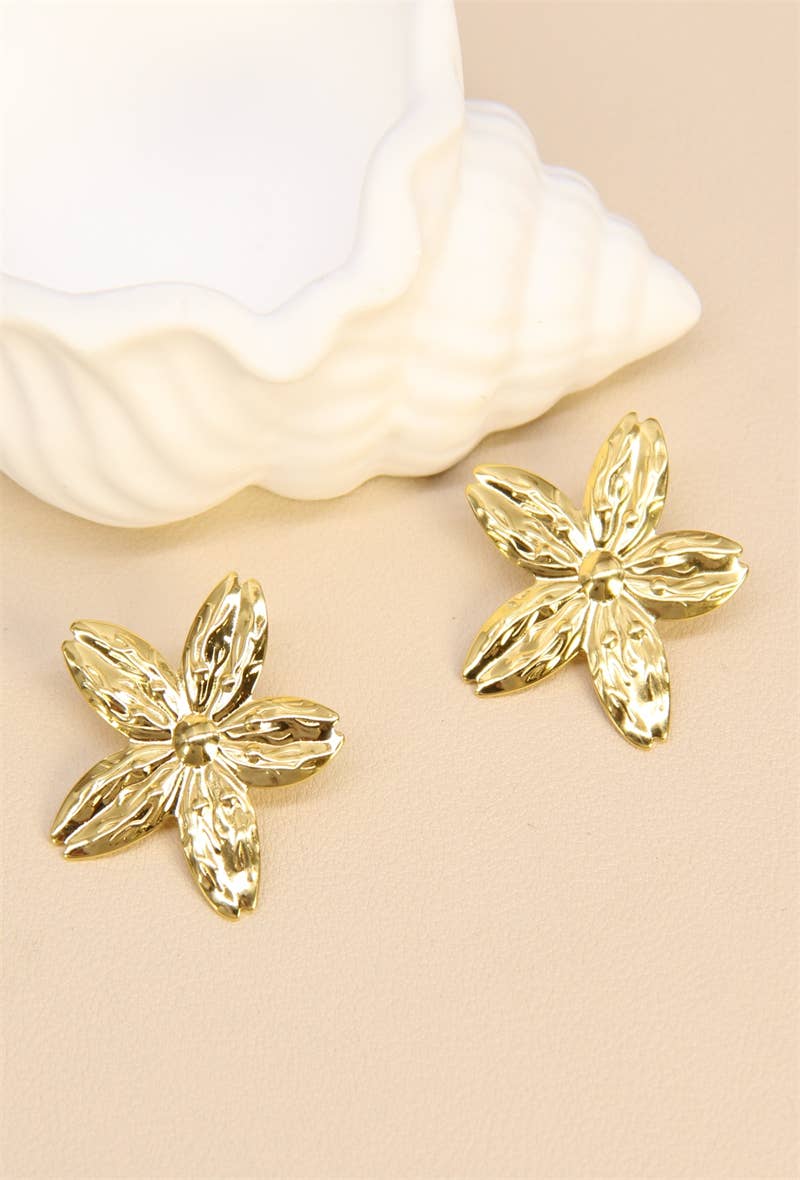 Roestvrijstalen Bloem Oorbellen: Verguld |Beautiva Boutique