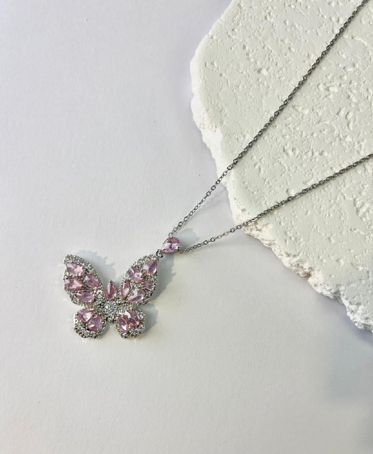 Tijdloze Roestvrijstalen Vlinderketting zilver\Roze|Beautiva Boutique