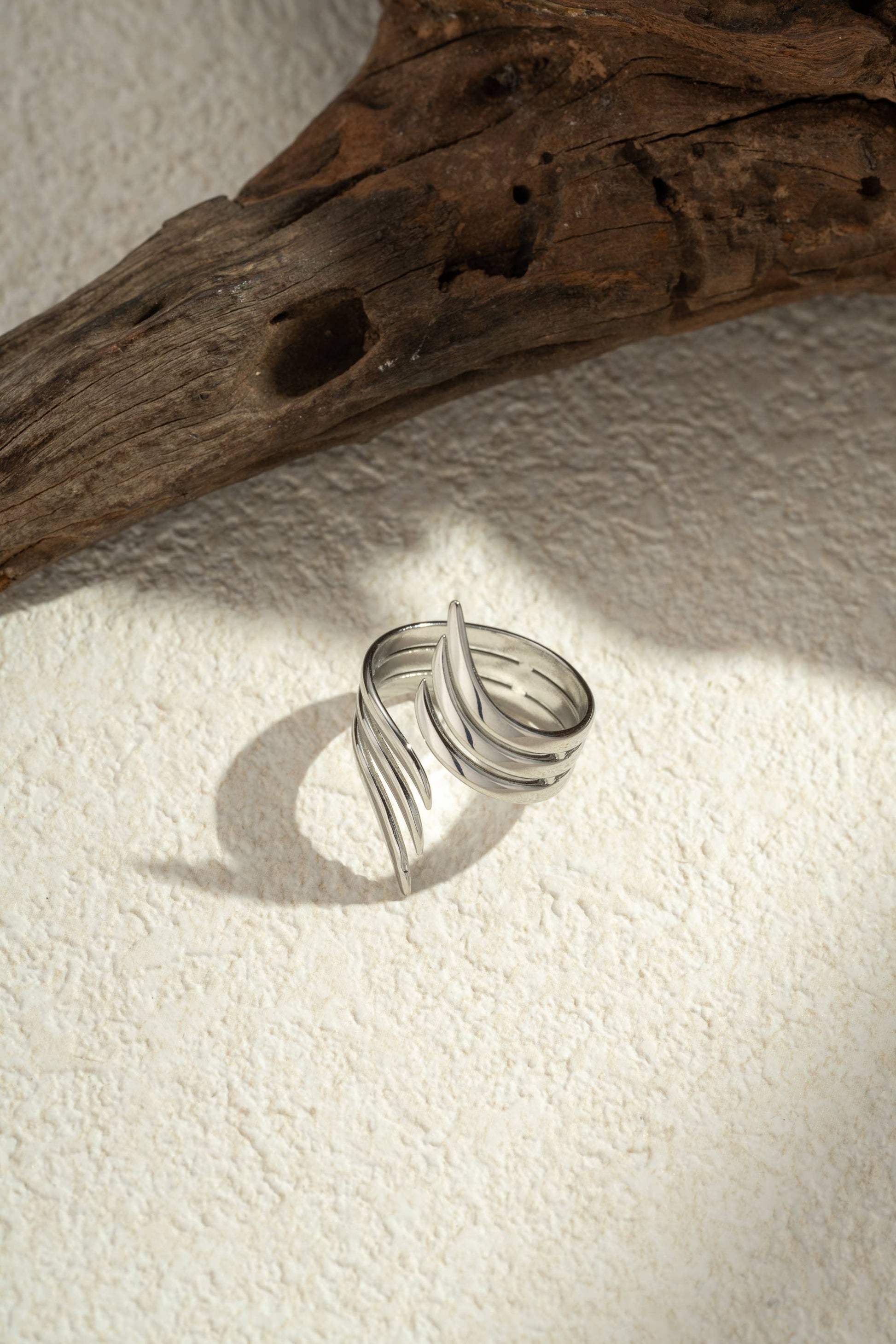 Verstelbare ring van roestvrij staal met een modern geometrisch ontwerp. De strakke en architecturale lijnen bieden een eigentijdse en gedurfde stijl. Glanzende afwerking, goud- of zilverkleurig, voor een chique en minimalistische look. Waterbestendig en hypoallergeen, kan dagelijks worden gedragen, alleen of in duo, voor een uitgesproken grafische touch.