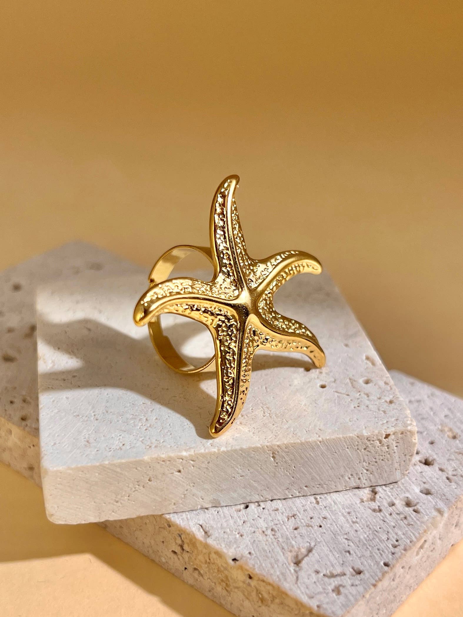 Verstelbare roestvrijstalen ring zeester goud | Beautiva Boutique